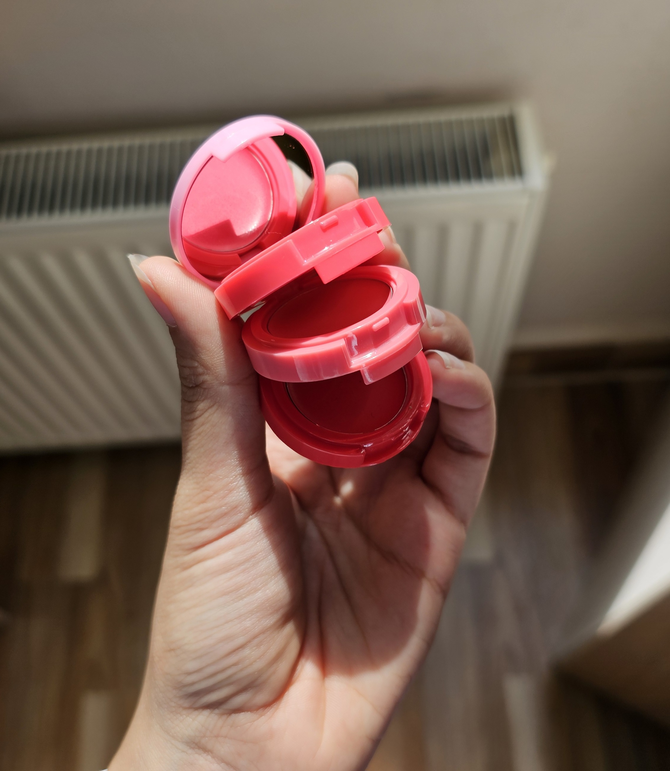 پلت رژ و رژگونه طبقاتی دوپ شیگلم: دارای سه رنگ خاص(صورتی ملایم+سرخابی+قرمز+آیینه)پیگمنت و رنگدهی محشر✅️