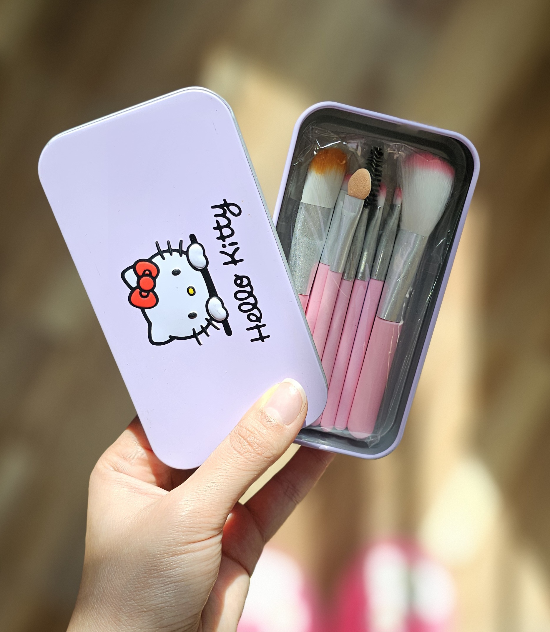 شامل: پد دو عددی پنجه گربه_ ست براش ۷ تکه جعبه فلزی کیتی_ کرم دست گربه ای_ آیینه جیبی_ ادکلن جیبی دانهیل