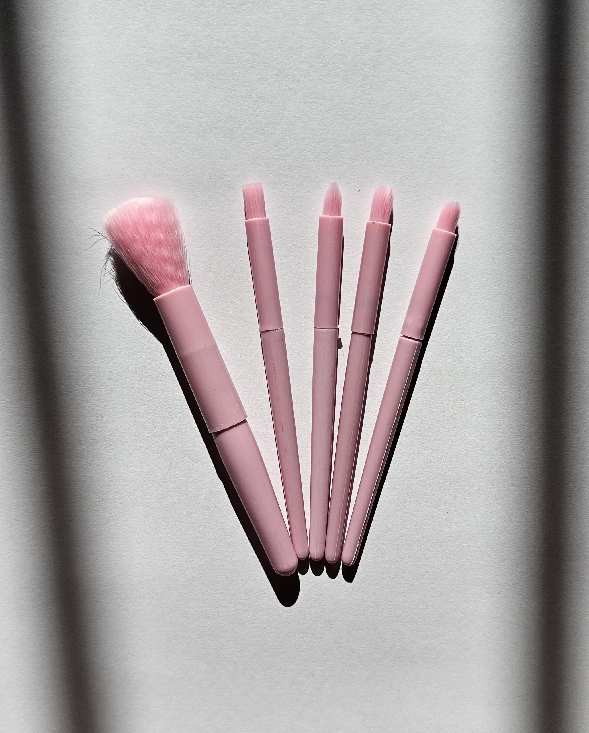 ☁️ست براش مینی: دارای ۵ تکه براش باکیفیت و کاربردی_ شامل براش سایه، رژگونه، پودرفیکس و..._سایز مینی مناسب استفاده روزمره_کیفیت خوب بدون ریزش