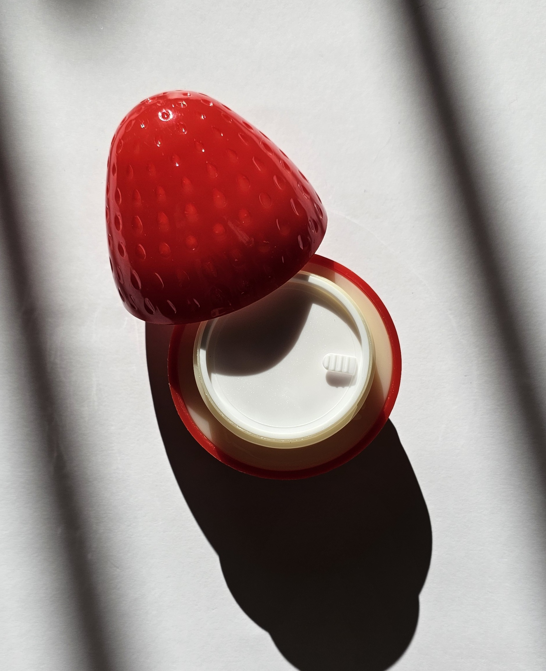 ☁️بالم لب توت فرنگی: نرم و مرطوب کننده پوست لب_ بسیار خوشبو_ رنگ ملایم و صورتی به لب ها میده_ از بین برنده خشکی و پوسته های لب